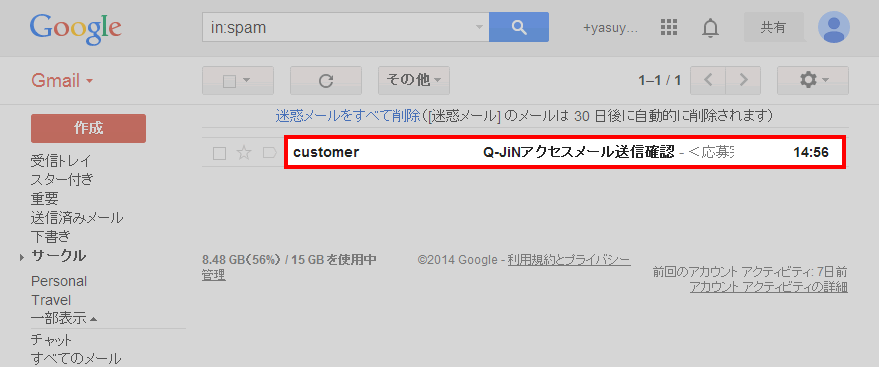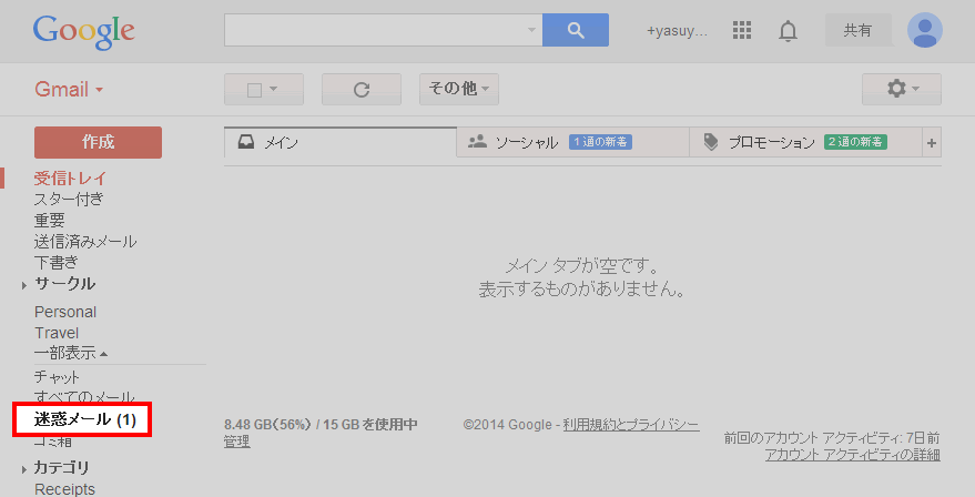 迷惑メールフォルダに入っているかを確認する方法