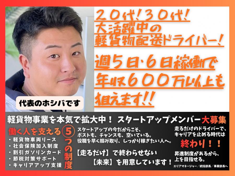 | 仕事内容 | ◇◆スタートアップメンバー募集◆◇ 配送ドライバーでキャリアストップせず、エリアマネージャー、統括部長、事業部長など昇進制度があり軽貨物事業を新たに開始する為、スタートアップの今だからこそ役職を早く掴み取り、お金を稼ぐチャンス! (役職ごとに報酬が上がるシステムで統括部長からは配送はしません) ≪Rハウスの魅力≫ ・20〜30代の若手から活躍できる環境が整っている! ・20代で月50万円以上!年収600万円以上稼ぐメンバーも多数! ・週5〜6日働きガッツリ稼いでいるメンバー多数! ・前職から平均で150万円以上年収UPしてます◎ ・車両リースや社会保険加入、節税金対策、お引越しなどサポート体制もバッチリ! ≪仕事内容について≫ 大手ECサイトの商品を、軽バンなどを使用して個人宅や企業にお届けします♪ 車両は持ち込みOK! リースも可能ですのでご安心ください♪ 配達件数は、未経験者の方は1日100件からスタート!→運んだ分だけ収入UP 配達に慣れてくると1日200〜250件こなしている方もいます! しっかり稼ぎたい方は個数を確保したり、ワークライフバランスを整えたい方は個数を抑えたり、働き方に合わせて案件の調整が可能です! ≪先輩ドライバーの1日の例≫ 8:00 配達センターで積み込み作業 9:00 配達スタート 14:00 朝の便配達完了 ※朝ご飯、お昼休憩等は各自隙間時間で自由に調整◎ 15:00 最終便積込作業 19:00〜20:00 配達終了 未経験スタートがほとんどで、車両リースや社会保険完備、税金対策、賃貸仲介などなどサポート体制もばっちり、配送経験ない人でもすぐ活躍でき、稼げます!! お気軽にご応募お待ちしております。 ≪アピールポイント≫ はじめまして! 代表の干場(ホシバ)です! この度弊社求人を見つけていただきありがとうございます!! 簡単に自己紹介させていただきます♪ ―― ガソリンスタンドのバイトから、30歳で独立するまで 私のこれまでの道のりは、決してエリート街道ではありませんでした。 東京都板橋区で生まれ育ち、高卒で進学した自動車専門学校も中退。 まずは生活のためにと始めたガソリンスタンドのアルバイトが、私のキャリアの原点です。 そこで接客と販売の面白さを知り、正社員へ。 その後は不動産業界に飛び込み、不動産買取再販業、埼玉での注文住宅販売、そして真夏の屋根や外壁の訪問販売……と、常に営業の最前線で「売る力」を磨いてきました。 そして2024年4月、これまでの経験をすべて凝縮し、リフォームと不動産を柱としたこの会社を立ち上げました。 ―― 「根性論」ではなく、「効率」で勝つ!! 長年、厳しい営業現場を経験してきたからこそ、私が経営において最も大切にしているのは**「効率よく考え、行動すること」**です。 がむしゃらに動くだけが正解ではありません。 どうすれば最短距離で成果が出るか、どうすればお客様に喜んでいただけるか。 常に思考を止めず、スマートに動くことで、 仕事の質もプライベートの充実度も変わると信じています。 オフの日は、大好きなアニメやドラマを観てリラックスしたり、ゴルフで汗を流したり。 オンとオフをパッと切り替えられる環境を、会社としても大切にしています。 ―― 「持ちつ持たれつ」で、共に高みを目指せる仲間へ 私が皆さんに約束したいのは、一方的な上下関係ではなく、「持ちつ持たれつ」の切磋琢磨できる関係性です。 会社は一人では大きくなれません。 メンバーの頑張りが会社を支え、会社の成長がメンバーの生活やキャリアを豊かにしていく。 そんな理想的な循環を作りたいと考えています。 「学歴や経歴に関係なく、実力で勝負したい」 「無駄な動きを減らし、成果に直結するスキルを学びたい」 「独立も視野に入れられるような、本物の力をつけたい」 そんな想いを持つ方の挑戦を、私は全力でバックアップします。 2人兄弟の末っ子として育ったからか、人のサポートをしたり、個性を活かしたりするのは得意な方です(笑)。 立ち上げたばかりの会社だからこそ、あなたの存在がダイレクトに力になります。 私たちと一緒に、新しい景色を見に行きませんか? ぜひご応募お待ちしてます! |