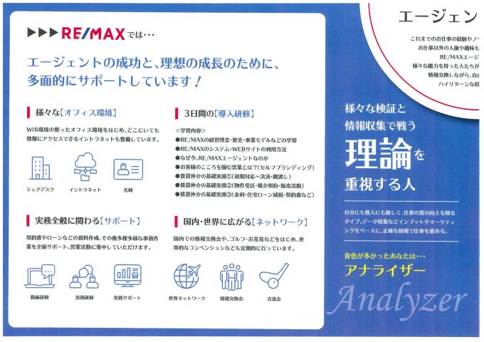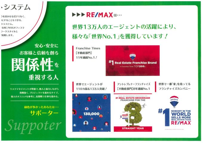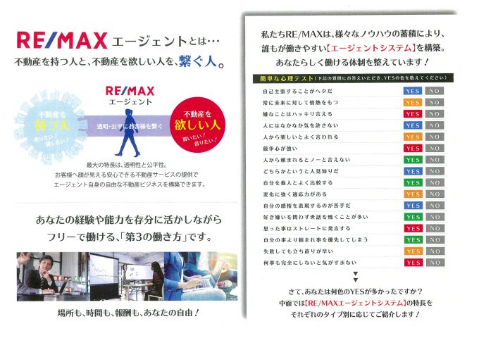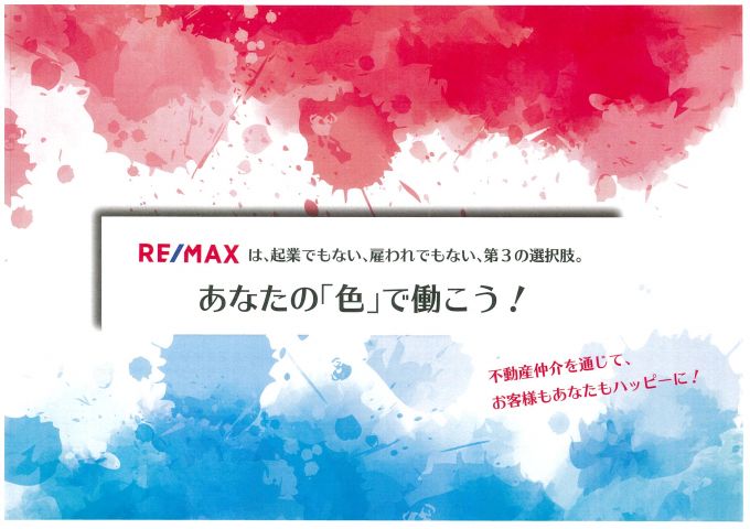 自由な働き方が可能な、RE/MAXエージェントとして、地域密着の、オープンメンバーとして、従来の働き方から、あなたのスタイルで自分らしく働いて、不動産の世界から「不」をなくしましょう!