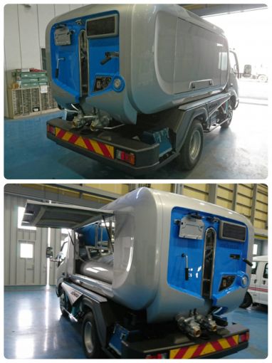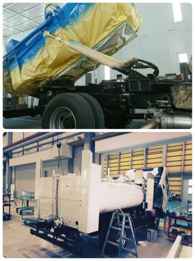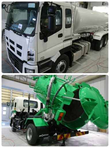 主に特殊車輌(収集車、衛生車等環境保全車輌)の塗装のお仕事です。