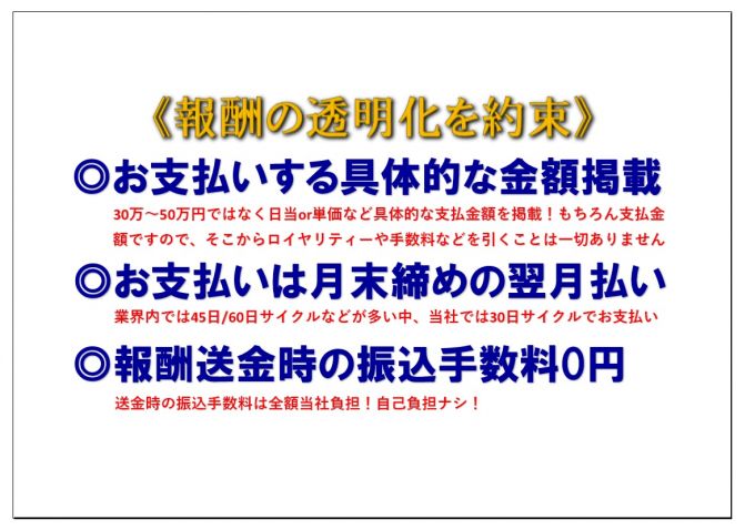| 採用プロセス | 応募 ⇒ 内容選考 ⇒ 弊社採用ライン ⇒ 採用 |