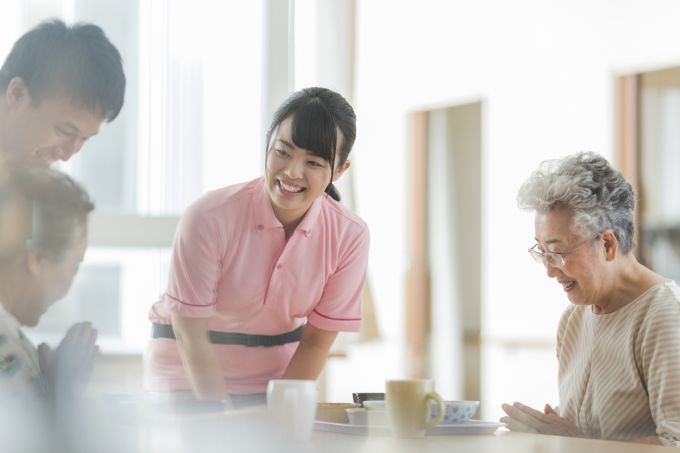 比較的、介護度が低いお元気な方が多く、談笑が絶えない明るい職場です。